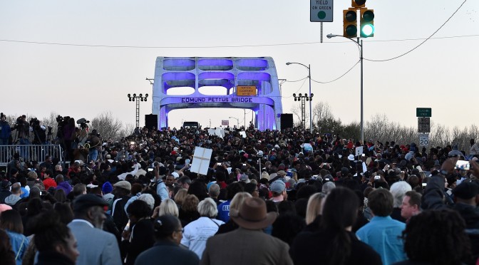 SELMA, AL – JANUARY 18: EDITORIAL USE ONLY The 2015 commemorative march on the Edmund Pettus Bridge on January 18, 2015 in Selma, Alabama. (Photo by Paras Griffin/Getty Images for Paramount Pictures)