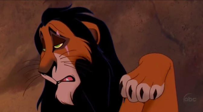 So what makes Scar a queer coded character? To quote Feminist Disney, queerness is “[a] character that is given certain characteristics that are likely to reference ‘queerness’ in the audience’s subconscious.” As a character, Scar is not only a villain because he has meglomaniacal and fratricidal urges. Those urges are couched and, to a certain extent, repackaged, as effiminate and slight tendencies. Watch this scene between Scar and Mufasa: